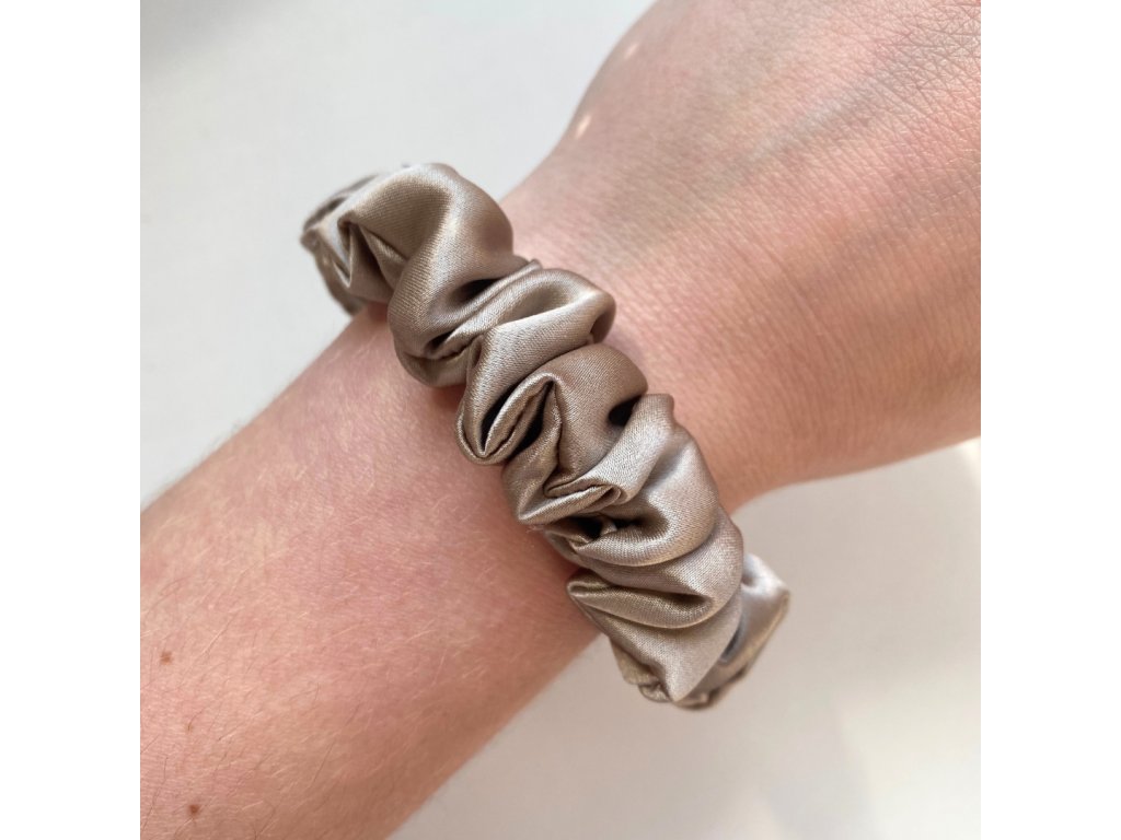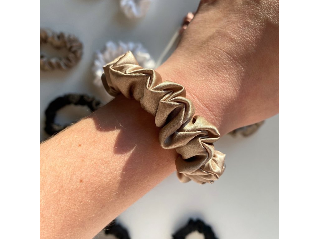 Hedvábná scrunchie gumička Gold Taupe ve velikosti typu II