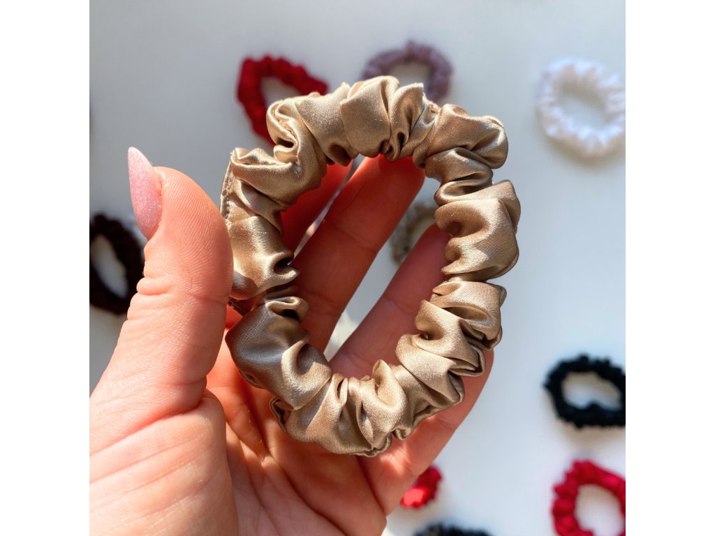 Gold Taupe - hedvábná scrunchie gumička
