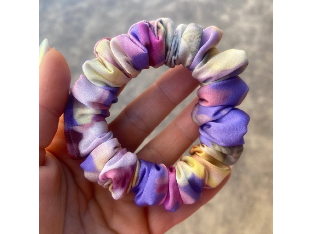 Gumička se středně širokým tunýlkem látky a středně dlouhou gumou. Doporučuji pro řidší vlasy, případně i pro husté vlasy třeba i jen na nasazení na drdol pro parádu.